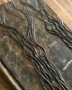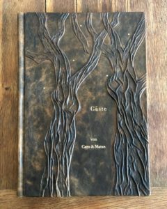 Gästebuch als Ganzlederband mit angedeuteten Bäumen durch geschobenes Leder